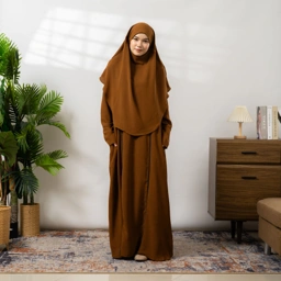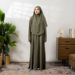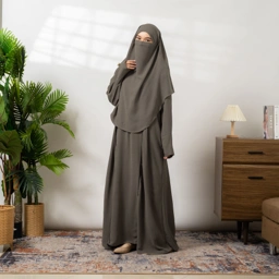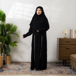 Faheera Abaya Set French Khimar dengan List Menambah tampilan Elegan dan Cute Sister, Cocok buat dipakai Acara besar, Pergi-Pergian, Ngantor dan Outfit Umroh♥️
