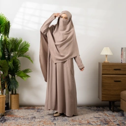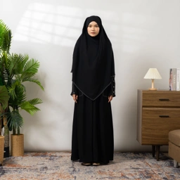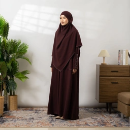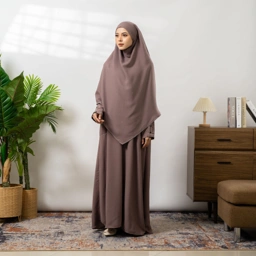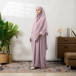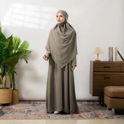 Miskha Abaya Gamis Set French Khimar Bahan Natail Terbaru Syari Haji Umroh hari Lebaran By Umnawear